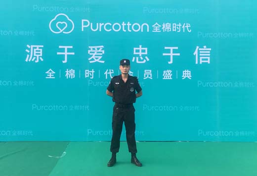 2017年8月19日我司派驻安保人员16人参加了深圳全棉时代“源于爱、忠于信”全棉时代会员盛典大会安全护卫工作。